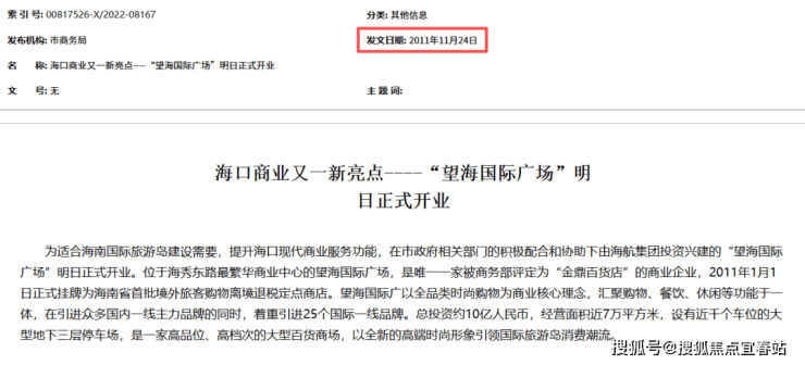 地处海秀东路核心商业圈的望海国际广场,是海南唯一一家获商务部“金鼎百货店”认证的商业体,并于2011年1月1日成为海南省首批境外旅客购物离境退税定点商店。