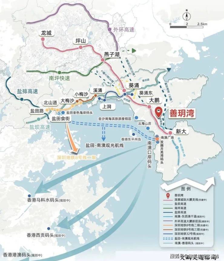 轨:深惠城际大鹏支线新大站,1小时内可直达市区(预计2024年年底竣工);