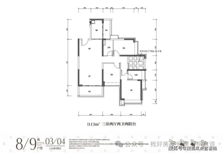 113平3房2卫(客厅开间4米)
