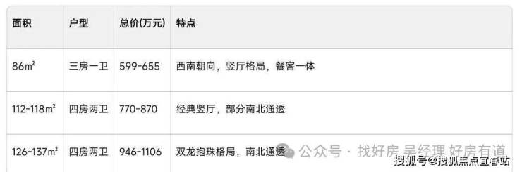 以下是龙岸君粼主推的平层户型及价格概况: