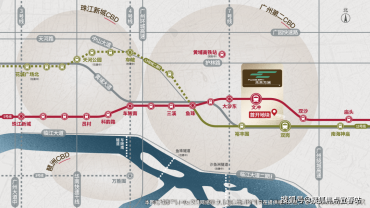 一、区位与交通:双地铁上盖,畅通全城 项目位于黄埔区文冲东旧改核心地段,距离地铁13号线双岗站约300米,距离5号线文冲站也仅500米左右。双地铁加持,快速通达珠江新城、琶洲、金融城。除此之外,项目临近黄埔大道、广深沿江高速、中山大道、广州环城高速,通勤无压力,未来规划黄埔高铁站落地后,出行将更便捷。