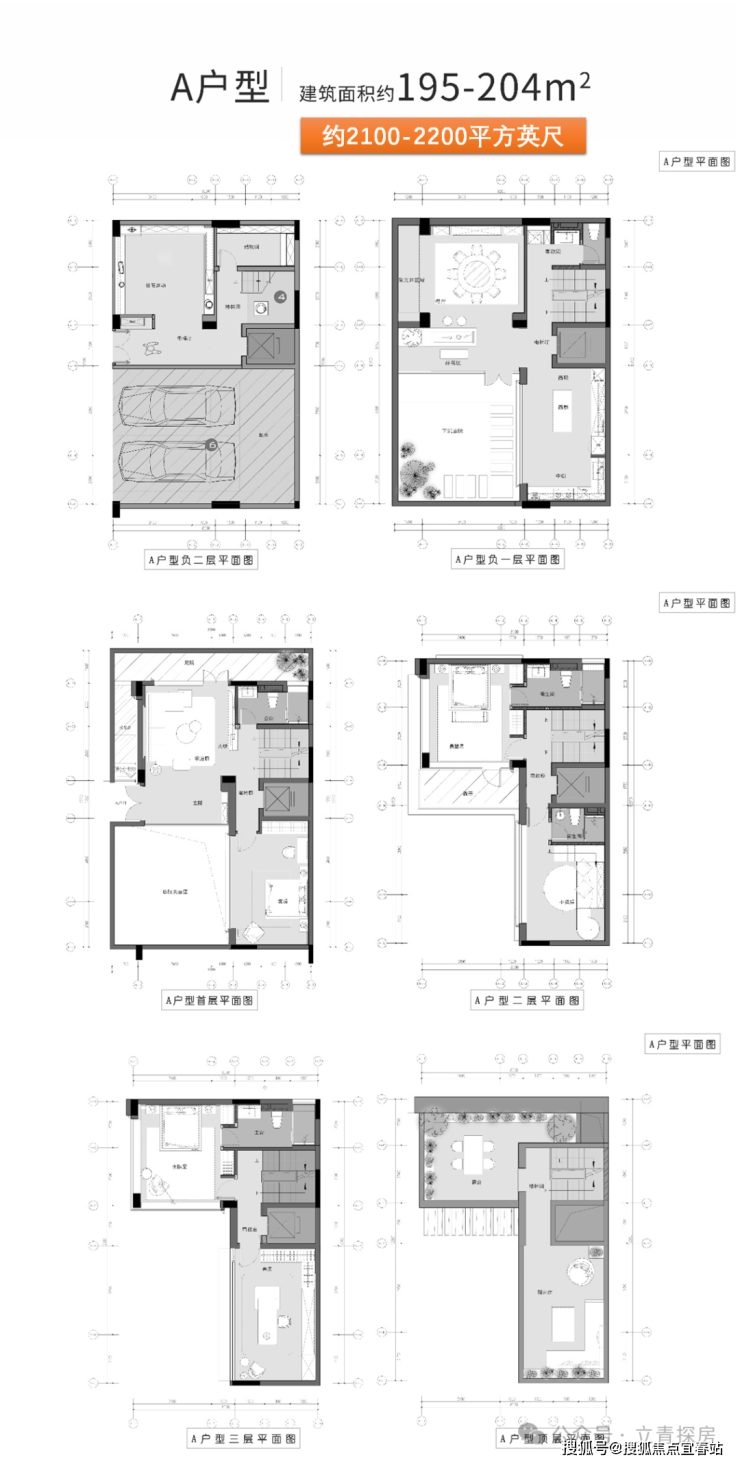 别墅:约175㎡-256㎡中式古典合院及195-220㎡现代别墅