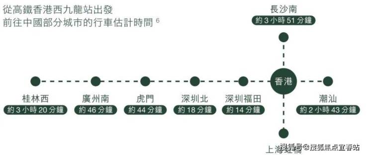 由港铁红磡站出发,只需两站到达港铁柯士甸站,乘坐高铁轻松前往广州深深圳,继而连接全国共约58个站点。