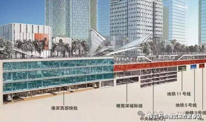 交通:距离 1/5/11号线三线交汇的前海湾站 约700余米。未来还将接入与2条城际线(穗莞深城际、规划港深西部铁路)通达湾区,以及未来的港深西部快轨。