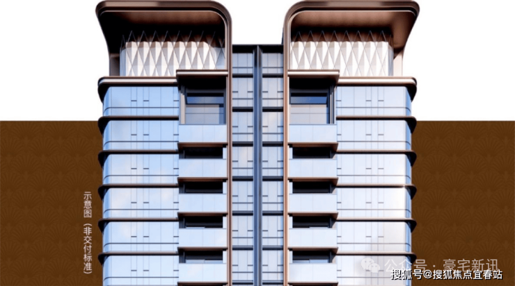 王座式塔冠,温润弧线设计,以及大面积通透LOW-E玻璃幕墙,辅以香槟金、内敛灰、雅致咖的品质铝板,匠呈恒久典雅立面。