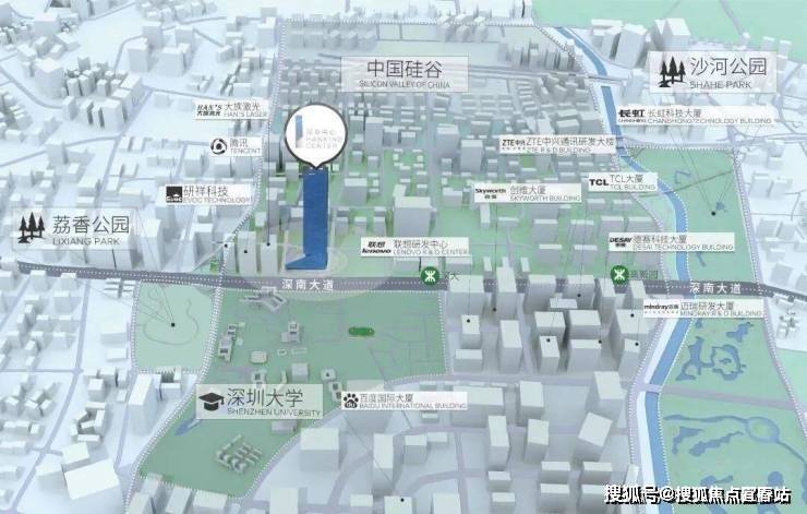 汉京中心傲踞科技园核心,这里有培育了马化腾等诸多知名企业家的深圳大学,聚集了大疆、微众银行等数家独角兽企业,以及百度、腾讯、迈瑞、中兴、TCL、大族、大疆、研祥、创维等众多世界知名IT企业的产研大楼及高新科技企业总部。科技园片区已然是整个深圳兼具成熟性和稳定发展潜力的核心商务区。