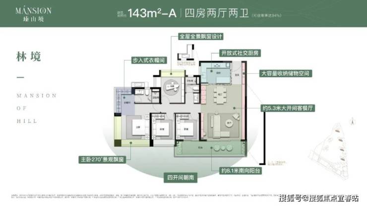 ① 建面约143平的A户型: