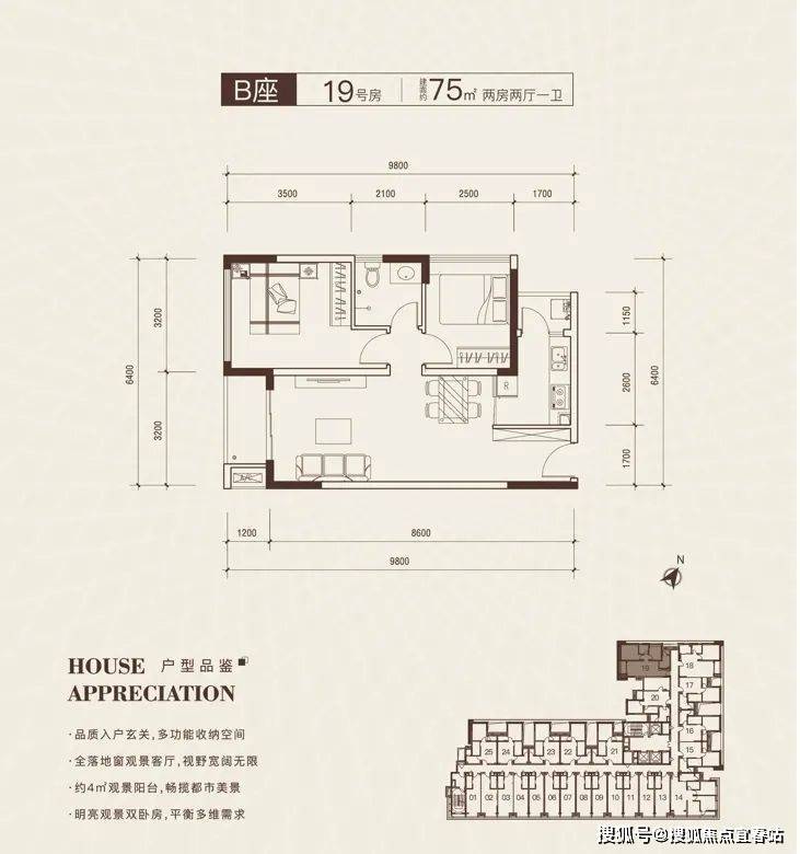 其中,公寓可售单元217套,主推建面约35-98㎡1-3房商务公寓,户户带阳台,采光通风性能佳。