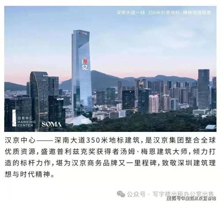 汉京中心——深南大道旁崛起的一座近八十层“新地标建筑”,作为未来此片区稀缺的可售型超甲级地标写字楼,