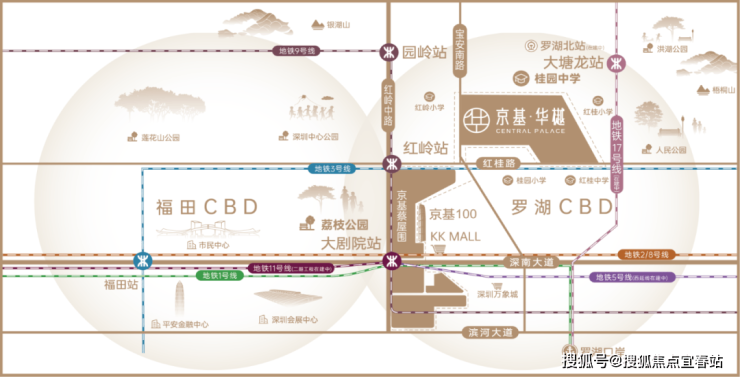 京基·华樾:罗湖-福田双CBD门户概念,突破传统行政区域界限,将罗湖福田双中心拉通,共享城市生活资源,拔高项目区域价值,吸纳双城区购房客群,扩充项目客户基数。