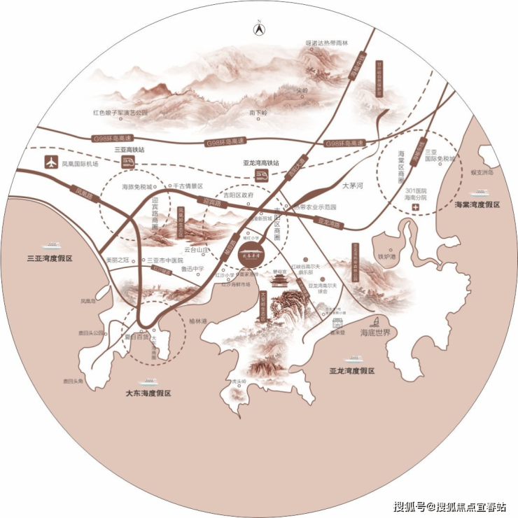 项目紧邻三亚旅游主轴——榆亚路,快速通达四大湾区:大东海、亚龙湾、三亚湾、海棠湾。