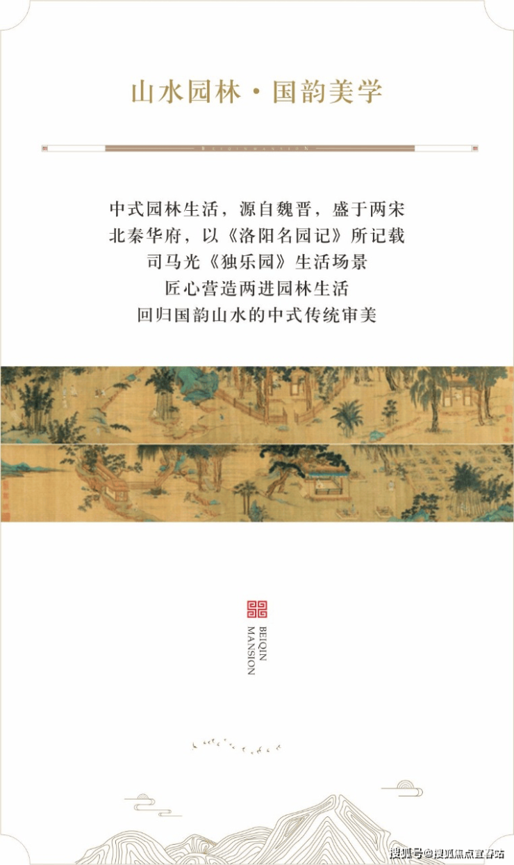 项目园林以环绕式连廊、点景亭台、曲桥竹径,将山水园境串联,归家、入户、观景、会友合而为一,一步一景,归心生活。