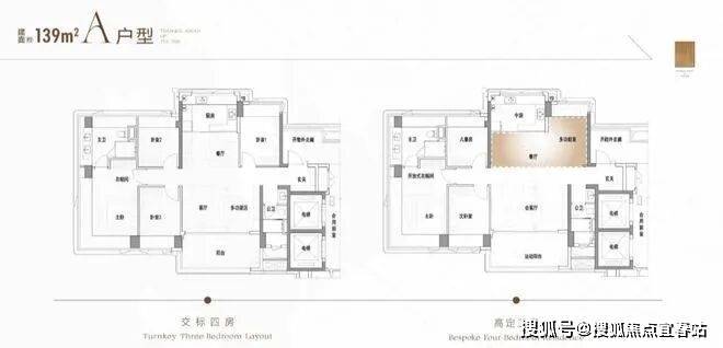 先看咨询量最大的139㎡A户型。原报建是四房两卫,南北通透。