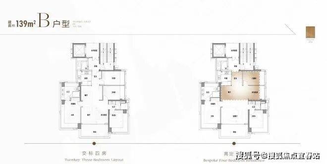 139㎡B户型:双龙抱珠,全小区就一条腿