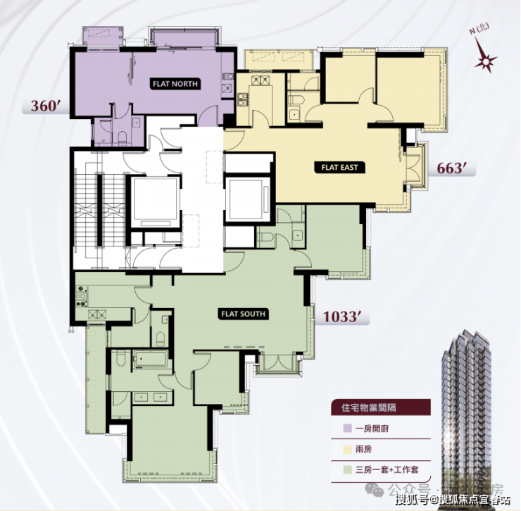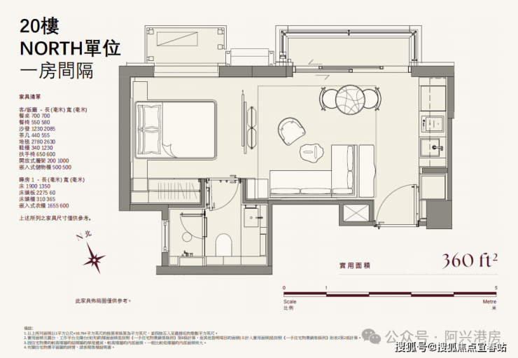 🔸最小面积为NORTH,实用面积360平方呎,属1房户型。