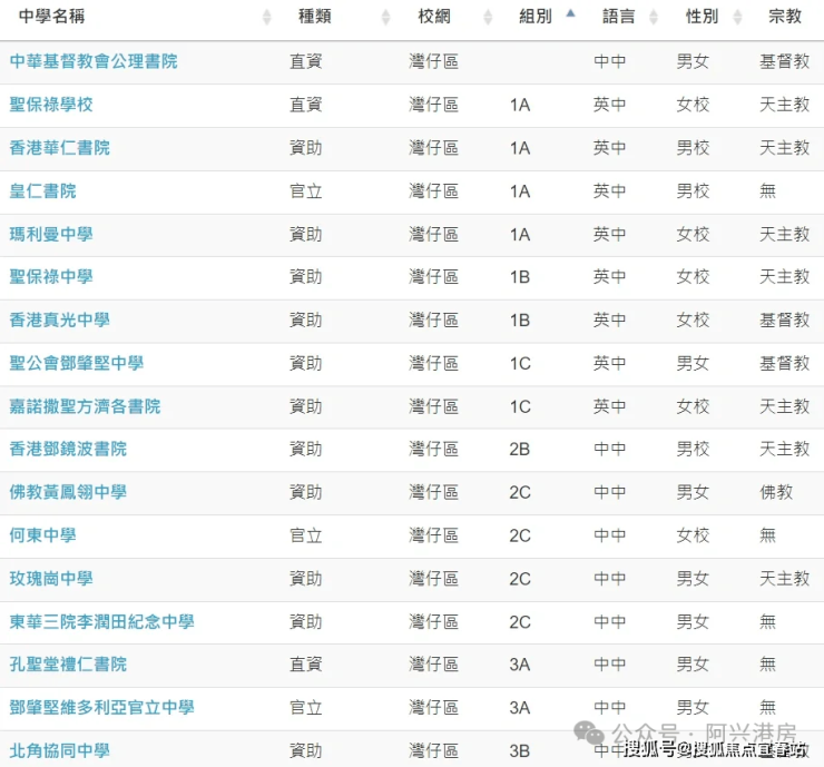 🔸中学校网:湾仔区