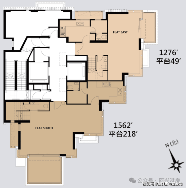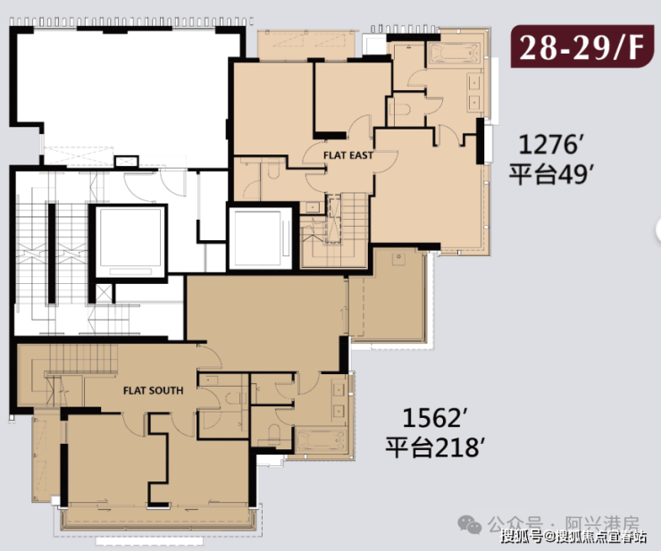 🔸面积最大则为顶层复式SOUTH,实用面积1562平方呎,3房1套户型,备有218平方呎平台。