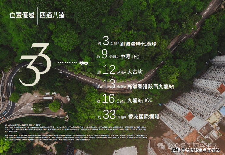 驾车3分钟到铜锣湾时代广场,9分钟到中环IFC,12分钟到太古坊,13分钟到高铁香港站西九龙段,16分钟到九龙站ICC,33分钟到香港国际机场。