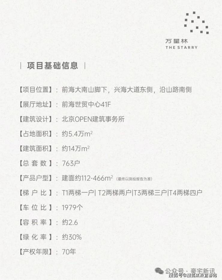 总用地面积 5.3万㎡,总建筑面积约 25 万㎡,容积率2.85,其中住宅 13万㎡共763 户,套均建面约172㎡,车位 1979 个。深圳70/90政策的退场,让它豪宅属性更加纯粹。是前海改善型客户不错的选择~