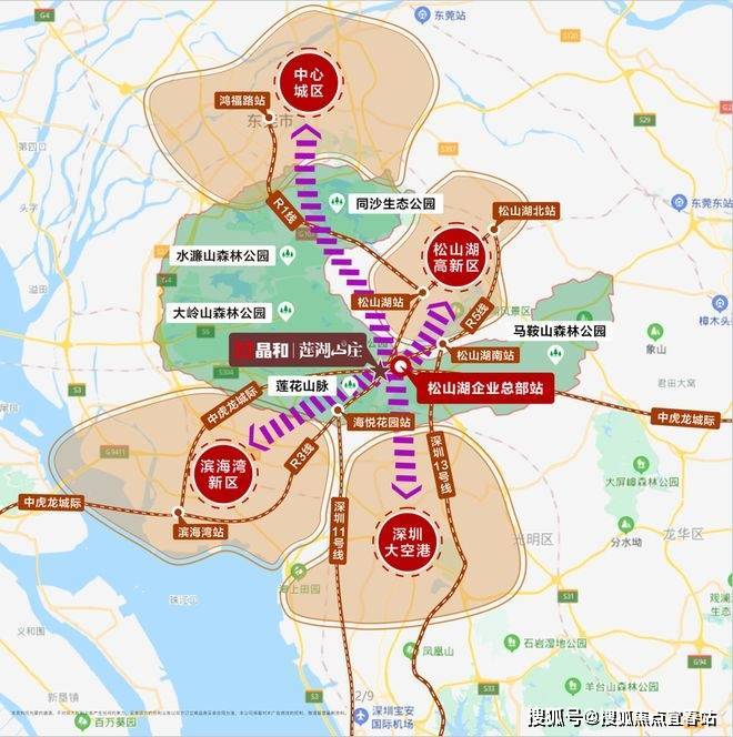 【交通要冲】——三轨交汇之地,松山湖企业总部站TOD核心区域,交通网络四通八达。