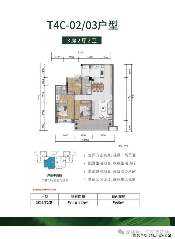 -全明户型,方正实用、公摊低,大主卧、超大景观阳台设计
