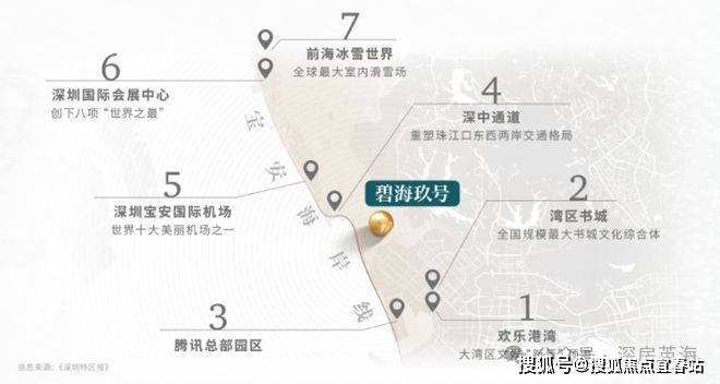 紧邻地铁11号线碧海湾站(约600m),1站机场、2站前海湾、4站后海、6站福田。