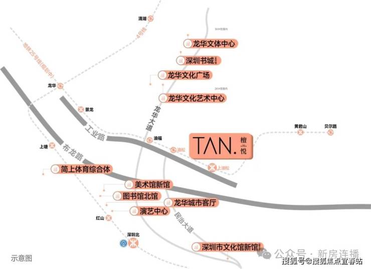 项目3公里范围内有龙华文化广场、龙华文体中心、深圳书城-龙华城、深圳市美术馆新馆(试运营)、深圳市图书馆北馆 (试运营) 、深圳市文化馆新馆 (建设中) 等市政级文化配套、超核绿心公园
