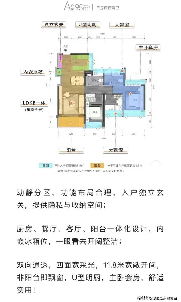 建面约95㎡/108㎡/109㎡/138㎡3-4房,格局方正,打造双飘窗主卧、步入式衣帽间等个性化空