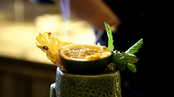 特色酒杯里这款将热带水果与酒精融合的"僵尸",凑近闻是水果的香气,入口是沁鼻的酸甜,扎堆已经默默将它列入年度最佳cp了!