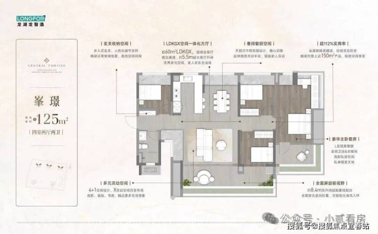 【125m²】15.1米南向面宽+8.4米超大阳台对流+首创外置厨房+改善首选 约8.4米超大阳台,5.5米超大客厅开间,近55㎡LDK设计,自创外置厨房,新潮实用,约7米270°环 幕观景窗,舒适大四房改善必选!