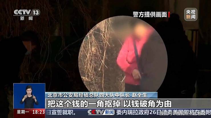 北京市公安局经侦总队四大队中队长 赵全生:老年人一般都会支付这种零钱,十块的,二十的,嫌疑人在收到这个钱之后,他迅速地用指甲盖儿把这个钱的一角给它抠掉,以钱破角为由,把钱再还给事主要求更换,事主再拿出其他的零钱进行购物的时候,他还以同样的手法撕角。直至老年人拿出自己手中的这个百元真钞交到嫌疑人手中之后,嫌疑人迅速地进行一个调包,声称太麻烦找不开,不行就还使刚才那个零钱,从中实现一个以假币换真币的这么一个手法。
