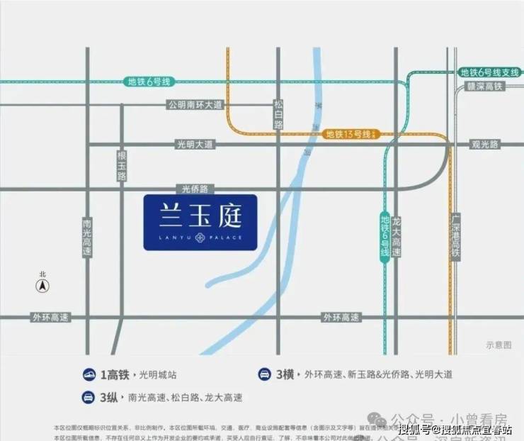 项目出门就是光明主干道光侨路,快速接驳深圳外环高速,南光高速,还有松白路半小时就可以直达南山西丽,当前最近的6号地铁线“长圳站”距离约5公里,后期周边规划有18/29号地铁线“根玉路站”在附近。