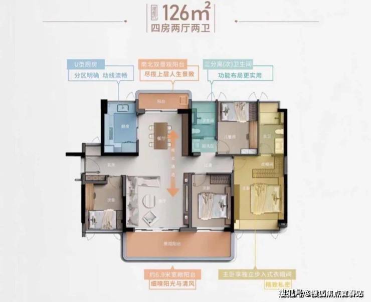 以建面约143㎡四房为例,项目对其内部空间进行了深度优化,在市场上脱颖而出,毫不夸张地说,其居住体验不输大平层豪宅。