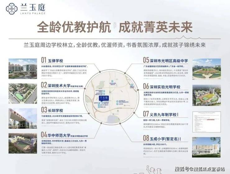 ✅【两大市先进制造园 擎引片区腾飞发展】• 【高端医疗器械】先进制造业园区:将打造超500亿元高端医疗器械产业集群,医疗产值约249.5亿元。• 【生物及人工智能】先进研发园区:云集深圳湾实验室、腾讯、中国计量科学研究技术创新研究院等高新企业。3⃣【多元丰富配套 畅享都市品质生活】✅家门口百年玉律学校,目送式菁英教育• 幼儿园:项目自带9班幼儿园(在建中)、玉成幼儿园;• 小学:玉成小学(在建中)• 初中:深圳实验光明学校、深圳技术大学附属学校(光明)、深圳市光明区高级中学;• 九年一贯制学校:直线距离约50米深圳市光明区玉律学校(教育部直属重点师范大学——华东师范大学“全国新基础教育基地学校”),深圳市光明区长圳学校、华中师范大学附属光明勤诚达学校。直线距离约1公里处,规划九年一贯制学校,教育资源更加优渥,未来价值不言而喻!