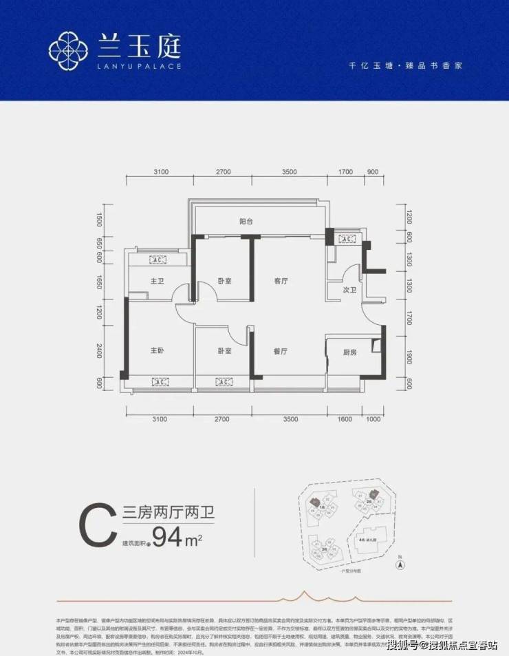 ✅约94㎡三房两厅两卫• 南北通透,四空间南向,约6.2米超大阳台,套房式主卧