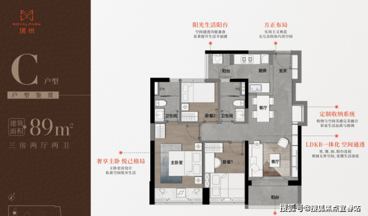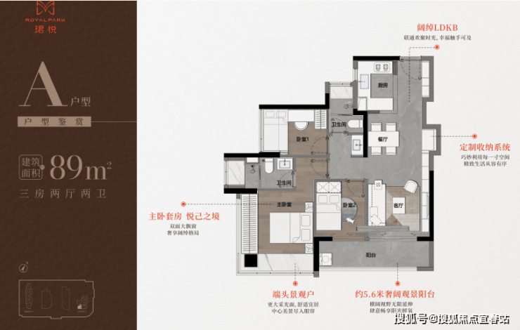 A户型:大阳台,主卧通过凸窗赠送衣柜,但次卧尺度都偏小,越过家居建材市场看向中粮大悦城写字楼,视野开阔