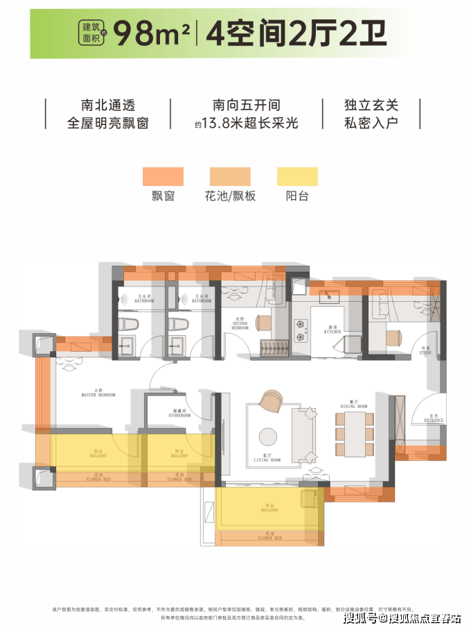 超95%使用率,而且全部南向,无遮挡采光,每个户型三开间朝南起步,甚至可以做到五开间朝南,舒适度不断升级。