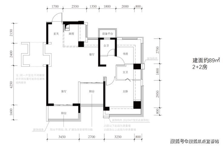 (1)建筑面积约89㎡户型