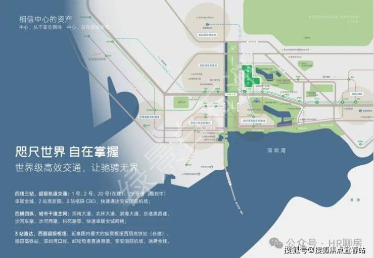 地铁1、20(建设中)、29(规划中)号线,与项目无缝接驳,联合旁边2号线,形成四线三站两枢纽轨交体系,高效通达各域;近享深南大道、北环大道、沙河东路等城市主干道:快速畅达西丽高铁站(规划中)、福田高铁站、深圳北站、太子湾邮轮母港、宝安国际机场等。