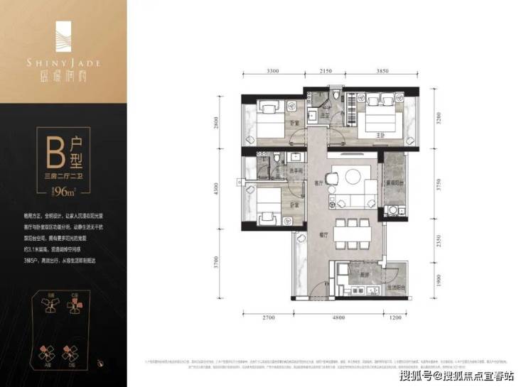 【盛龙时代】定位是面向城市精英的乐活、时尚的精品社区。可售房源仅约110套。本次推售的是市场臻稀的创新产品:约99㎡3+1房2卫,以及约95㎡三房2卫