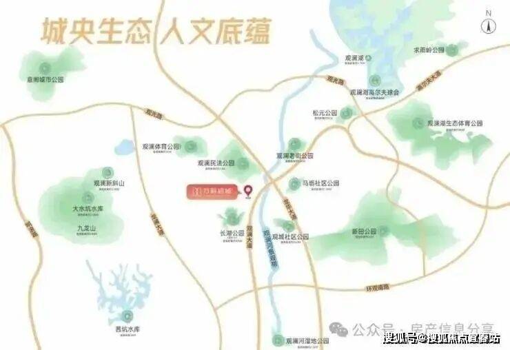 项目周边汇集五大公园,观澜湖生态体育公园(运营)、观澜民法公园、观澜体育公园(在建)、观澜河湿地公园、长湖公园(规划)及茜坑水库。