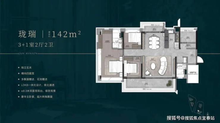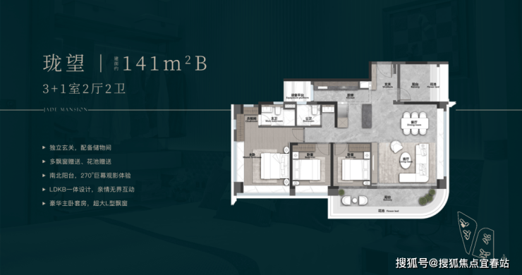 /珑望(141㎡B):四房设计,带独立书房,空间宽敞,改善属性明显。