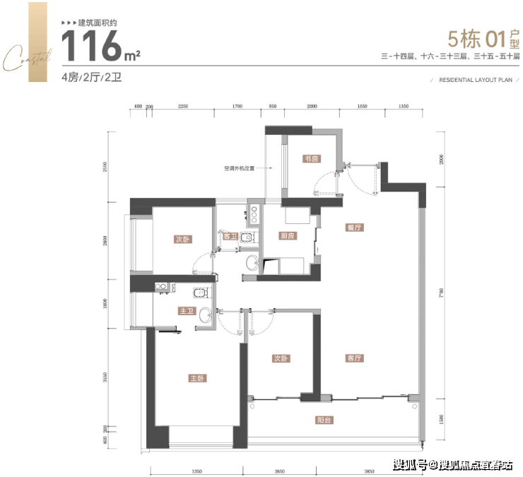其中,建筑面积约116㎡的4房2卫,是万丰海岸城本次推出的面积最小户型,经典的竖厅格局,动静分区,进门处是一个小房间后期可以打造成书房,厨房连接餐厅,餐客厅一体化,南向约6.5米大阳台连接次卧,主卧带独立卫生间,这个户型最大的亮点就是客厅很大,客厅开间约3.85米。这个户型主要分布在01和02户型,客厅都是西南朝向看小区花园、海岸公园、万丰海岸城商业和深圳外国语宝安学校。
