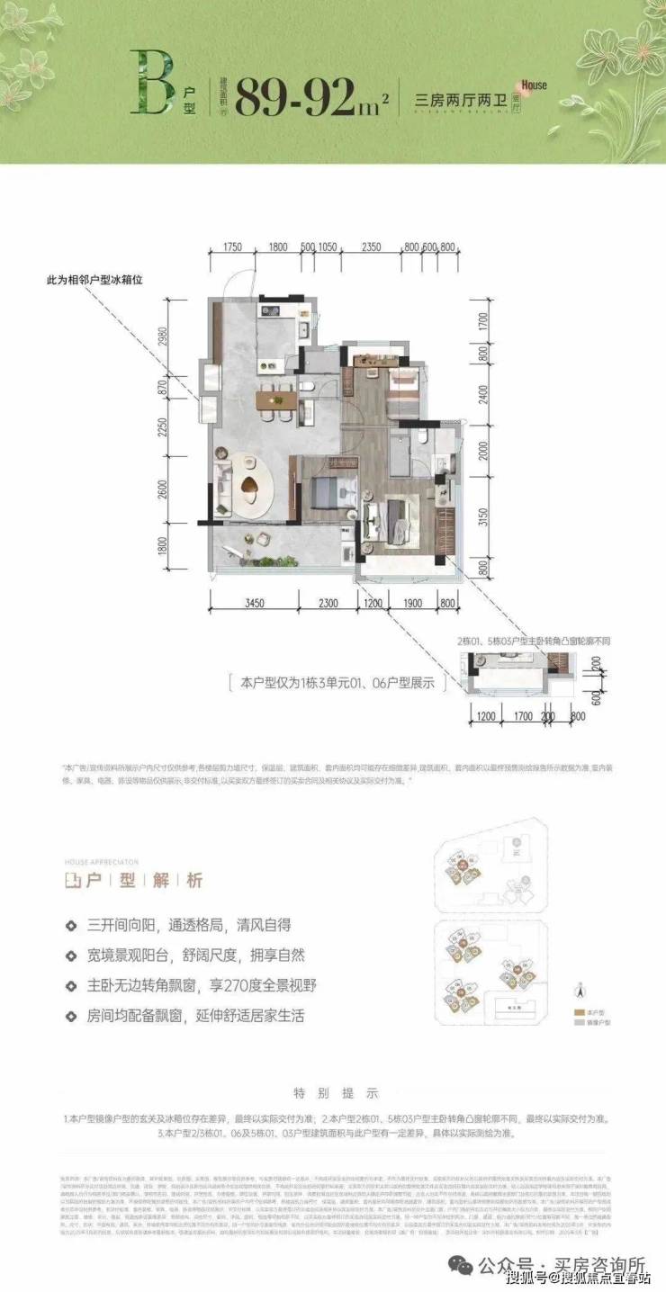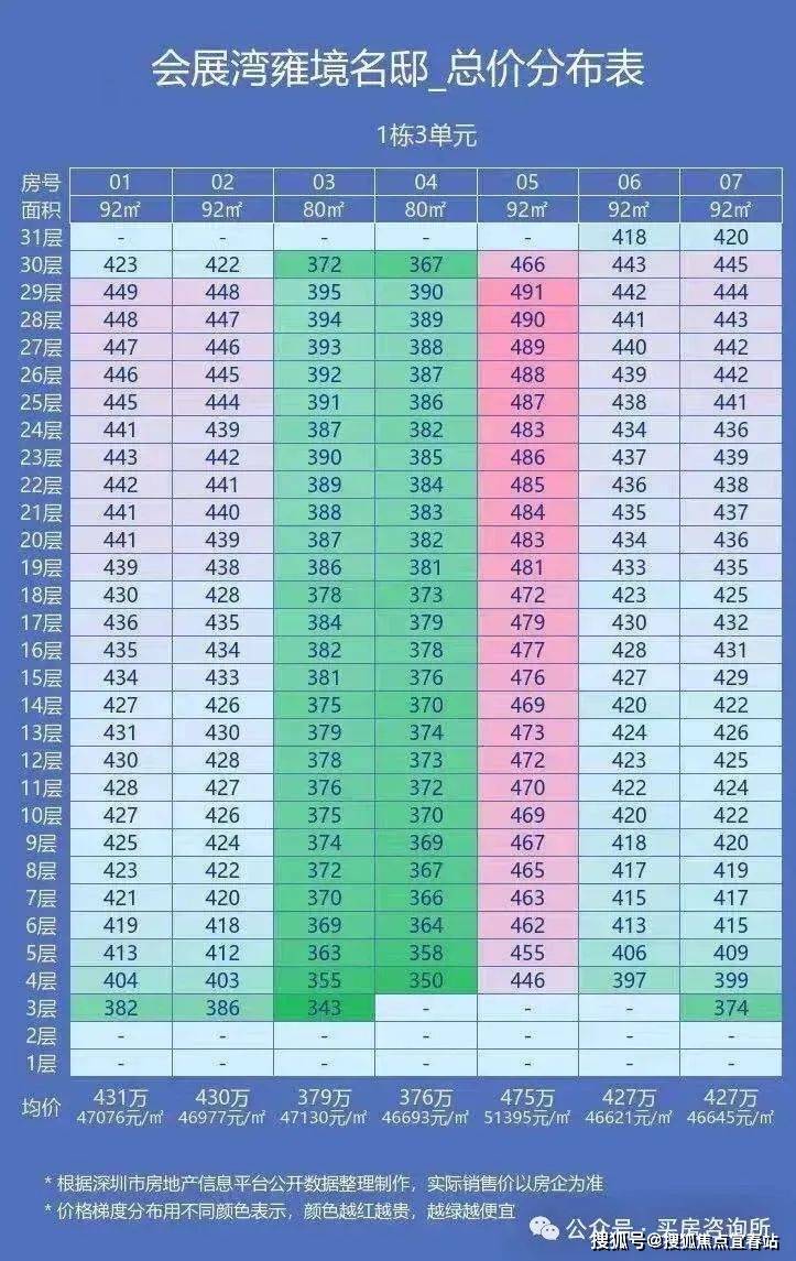 宝安首个新规楼盘,招商会展湾雍境二期前段时间拿证开盘,首推80-92㎡三至四房,备案均价4.76万/㎡,80㎡备案总价343-395万,01-06-07户型91㎡竖厅总价374-449万,05户型92㎡横厅总价446-491万,目前已开始诚意登记,登记99折、7天准签99折,折后最低336万起买三房