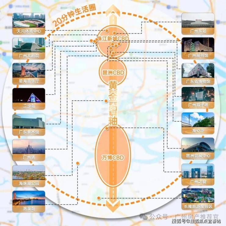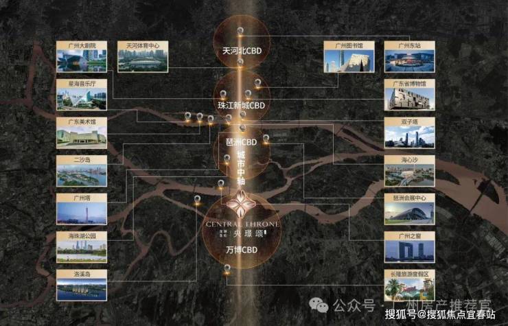 项目择址广州黄金中轴南拓首站,稀贵中轴岛心,咫尺珠江新城-琶洲-万博三大CBD,绝版江城双景,主城烫金版图,尽享城市塔尖资源。