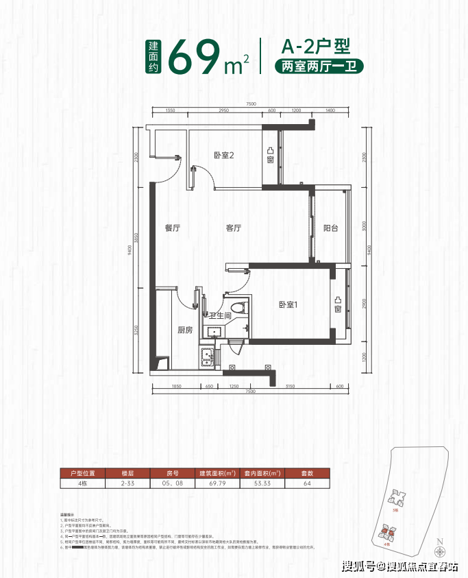 两房户型:从户型排序上看 A-1>A-2'>A-2。从景观视野来看,4#栋优于3#栋。