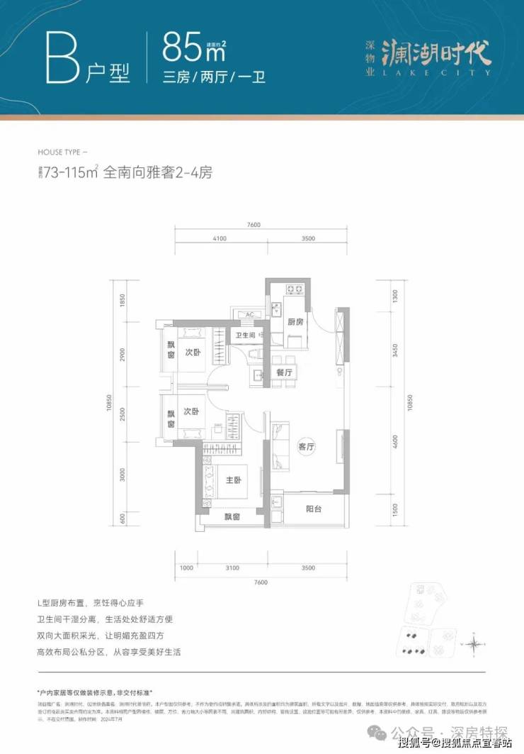 产品面积段:建面约73-115㎡全南宽奢2-4房