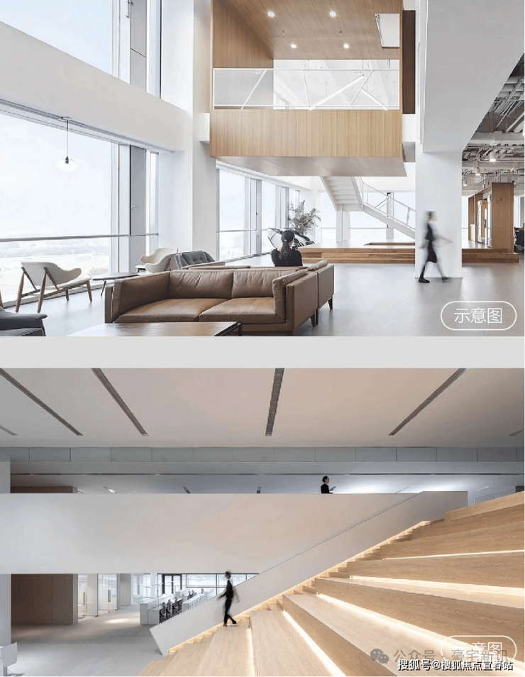 •部分楼层双层通高,可作为企业挑高前台、阶梯路演厅等,多功能空间自由组合