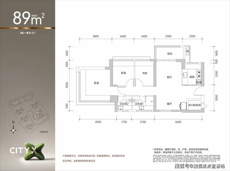 王炸户型 约89㎡3+1房两厅两卫