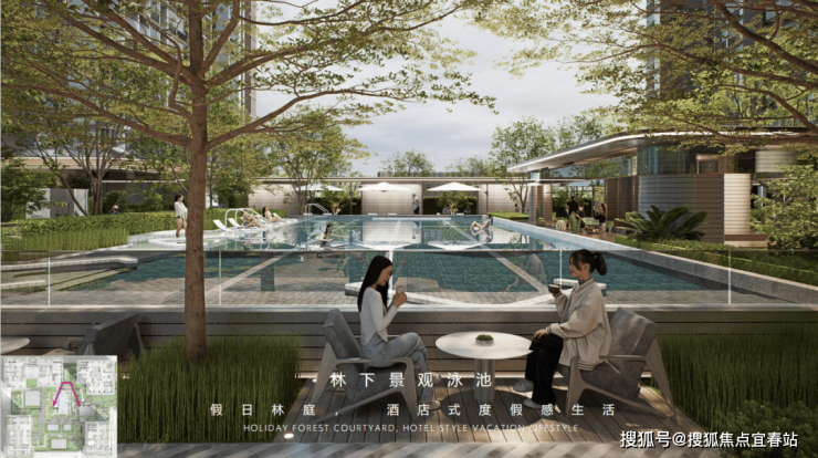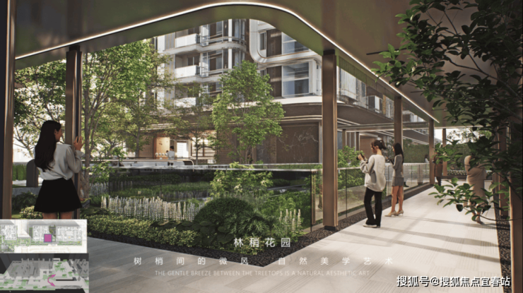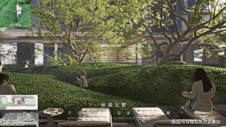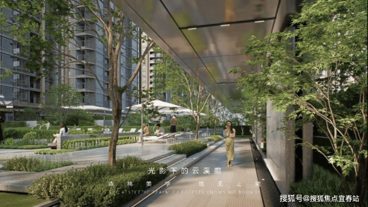 住宅景观:以“空中院馆”为设计理念链接自然,营造酒店式的生活体验。通过风雨连廊联动四季庭院,实现室内外功能整合。园区结构由极核中庭、生活美学庭院、礼序花园玄关和景观泳池组成,核心元素包括林下客厅、秘密花园及浅丘秘境,并利用空中花园打造观景廊亭,增强城市视野。